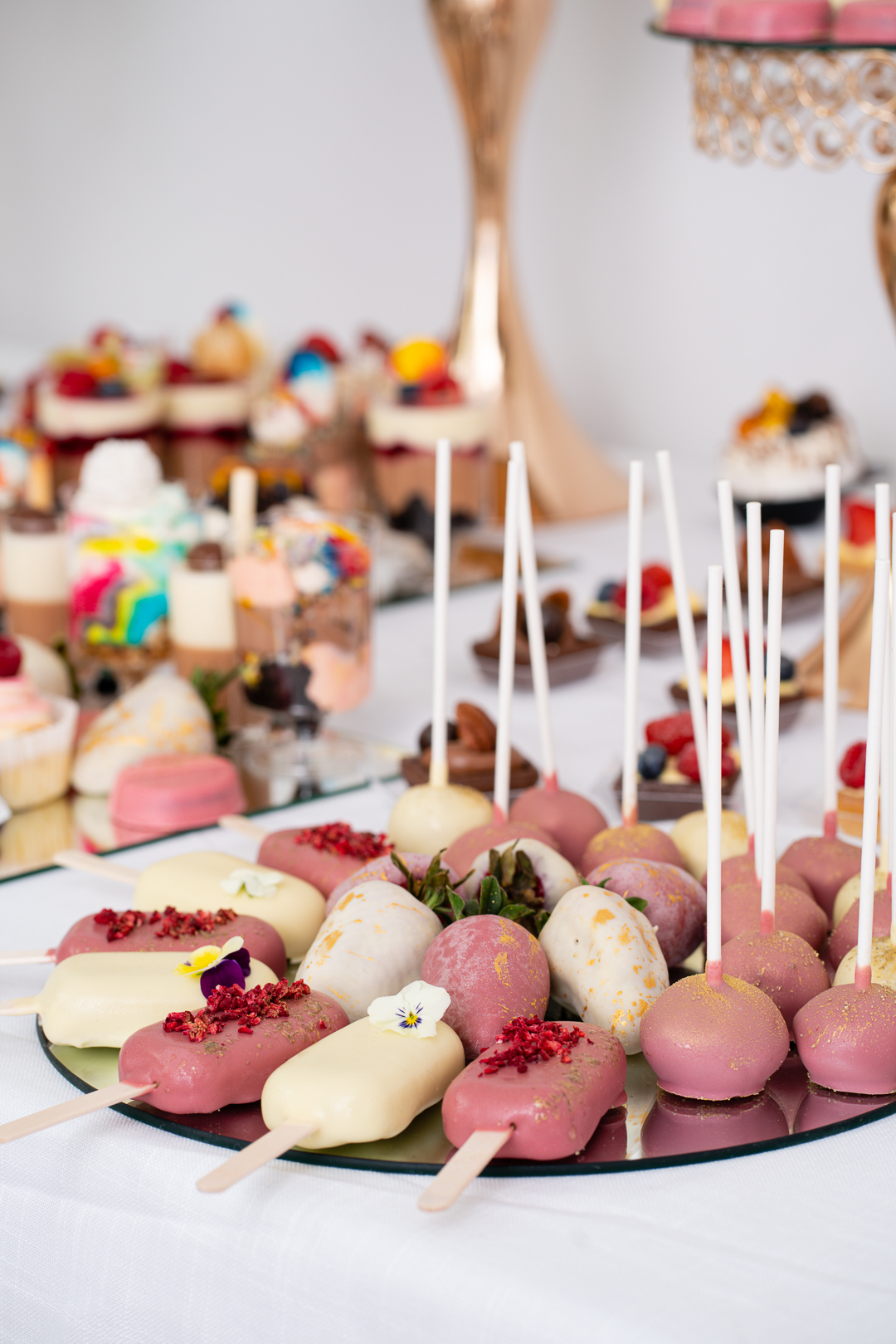 O altă opțiune pentru crearea unui bufet de dulciuri cât mai elegant este să optezi pentru deserturi gourmet, precum dulciuri personalizate cu inițialele voastre, căpșuni glasate în ciocolată sau migdale învelite în ciocolată albă. Dacă vrei să-ți surprinzi oaspeții într-un mod inedit, alege un candy bar BerryO care conține o gamă variată de deserturi din ciocolată belgiană cu o textură fină și fructe proaspete de sezon.