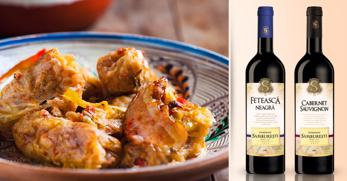 Cum este o masă festivă în România, sarmalele nu pot lipsi. Pentru ele, un soi autohton cum este Feteasca Neagră este asocierea ideală, dar oricare dintre vinurile roșii seci menționate anterior poate fi o continuare la fel de fericită.